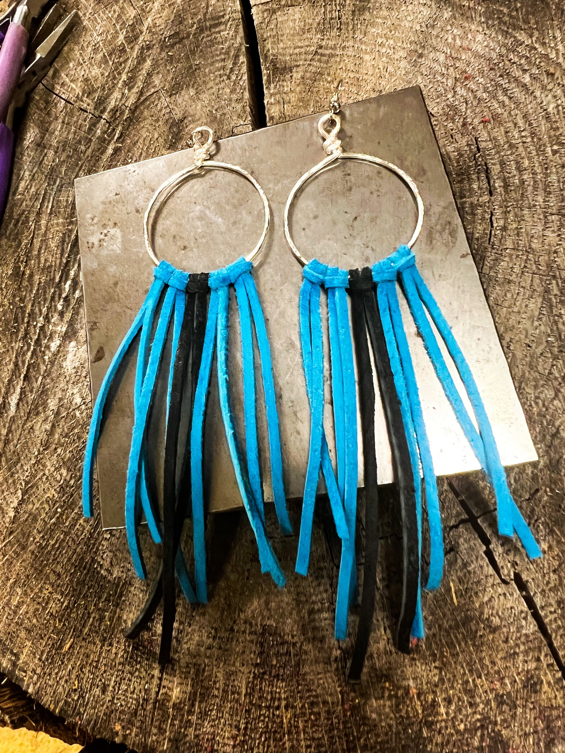 Get ready for game day with super fun hand made hoops with leather fringe to match your team!